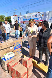 La presidenta del DIF Estatal, Aurora Jiménez Esquivel, y el presidente municipal de Aguascalientes, Leonardo Montañez Castro, dieron el banderazo de salida a un segundo convoy con más de 20 toneladas de víveres en apoyo a los habitantes del estado de Guerrero que resultaron afectados por el huracán Otis.