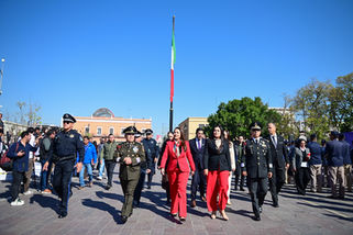 Tras encabezar el izamiento de la Bandera en la explanada de Plaza Patria, la gobernadora reafirmó que Aguascalientes continuará siendo tierra de paz, de gente buena, de oportunidades y de futuro; asimismo, convocó a seguir consolidando al estado como referente nacional.