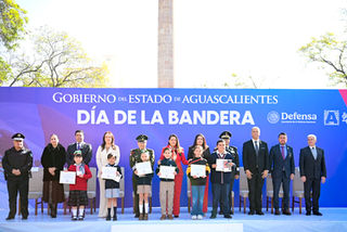 “Que nuestra bandera sea una guía y el símbolo del compromiso que tenemos de construir una nación digna, justa y solidaria. Sigamos demostrando que, gracias a la entrega, compromiso y valores de la gente de esta tierra, Aguascalientes es un ejemplo de paz, un ejemplo de desarrollo y un ejemplo de justicia. ¡Viva nuestra bandera! ¡Viva Aguascalientes y que viva México”, les dijo la gobernadora.