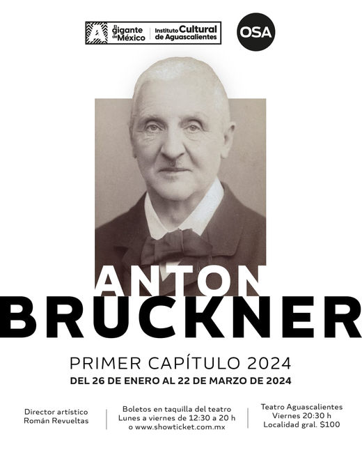 Durante este año, se interpretarán sinfonías de Anton Bruckner, compositor austriaco nacido hace 200 años, quien escribió diversas obras. Bruckner es uno de los grandes sinfonistas de la historia, en sus obras destacan las poderosas sonoridades del órgano y la mística profundidad de sus movimientos lentos.