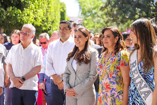 Acompañaron a la gobernadora alcaldes; diputados locales y federales; empresarios; funcionarios estatales y municipales; además de la reina electa de la FNSM 2023, Yoselín, y sus princesas Ximena y Carolina; entre otras autoridades.