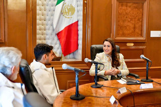 La gobernadora de Aguascalientes, Tere Jiménez, se reunió con Rogelio Guerrero Reyes, destacado joven aguascalentense y bicampeón de la 65ª edición de la Olimpiada Internacional de Matemáticas, celebrada en Bath, Reino Unido, donde hizo historia al convertirse en el primer mexicano en obtener dos medallas de oro en esta competencia, pues el año pasado hizo lo mismo en Japón.