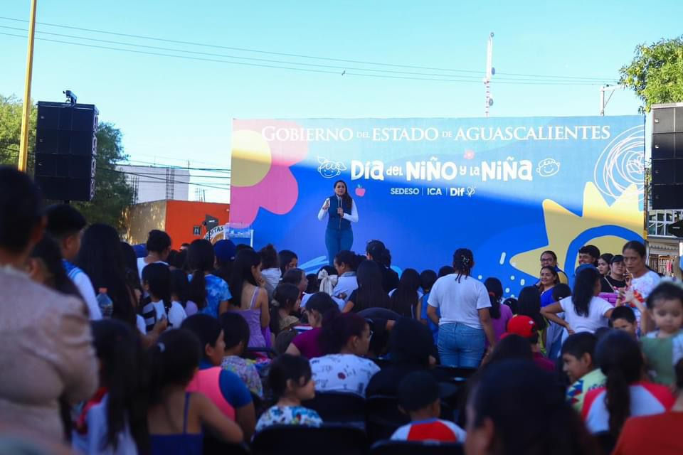 La gobernadora de Aguascalientes, Tere Jiménez, visitó algunos municipios, en donde felicitó a niñas y niños por su día.
