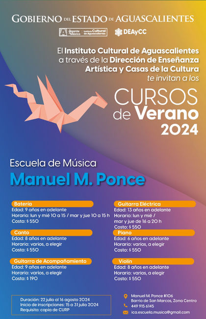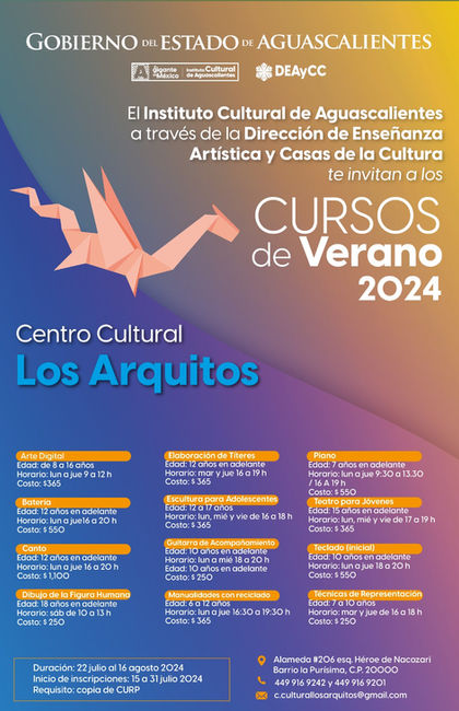 ¿Quieres aprender algo nuevo estas vacaciones? El Gobierno del Estado, a través del Instituto Cultural de Aguascalientes (ICA), te invita a los cursos de verano que se ofrecerán en diferentes centros culturales y en las Casas de la Cultura de los municipios de la entidad.