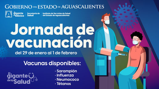 Asimismo, el sábado 31 de enero y el domingo 1 de febrero se mantendrán activos módulos de vacunación en el Mercado Municipal de Pabellón de Arteaga y en el Centro de Salud de Jesús María, ambos en un horario de 9:00 de la mañana a 6:00 de la tarde.