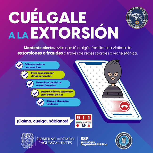 La Secretaría de Seguridad Pública del Estado (SSPE) te invita a seguir algunos consejos para prevenir extorsiones o fraudes telefónicos.