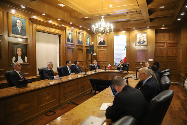 En la reunión que se realizó en Palacio de Gobierno también estuvieron el diputado Salvador Alcalá Durán, presidente de la Comisión de Economía y Turismo del H. Congreso del Estado; Esaú Garza de Vega, secretario de Desarrollo Económico, Ciencia y Tecnología del Estado; Enrique Peralta Plancarte, secretario de Obras Públicas del Estado; y Eduardo Aguilar Sierra, consejero jurídico del Gobierno del Estado, entre otras autoridades.