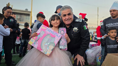 Encabezados por el secretario de Seguridad Pública, Antonio Martínez Romo, las y los oficiales entregaron más de 2 mil 500 juguetes, reunidos gracias a la generosidad del personal operativo y administrativo de la corporación. Cada obsequio se convirtió en un momento especial, lleno de emoción, ilusión y miradas que reflejaron la magia de la Navidad.