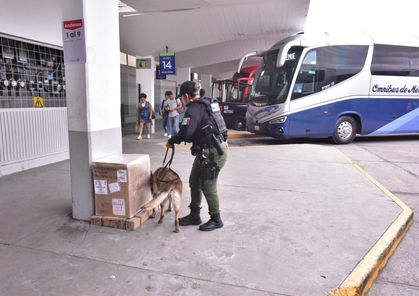 Añadió que de manera aleatoria también se efectúan revisiones con el apoyo de los binomios caninos del Grupo K9 de la Policía Estatal, tanto en la zona de espera como en los andenes, sin que hasta el momento se hayan detectado sustancias ilícitas en el equipaje de las y los usuarios.
