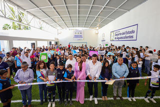 La gobernadora de Aguascalientes, Tere Jiménez, hizo entrega de infraestructura deportiva en la Escuela del Deporte, con lo que niños, niñas y jóvenes que ahí estudian, podrán practicar futbol, basquetbol y voleibol.
