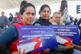 Con el objetivo de mitigar las afectaciones ocasionadas por la sequía, la gobernadora de Aguascalientes, Tere Jiménez, entregó apoyos a los productores del municipio de El Llano que participaron en trabajos temporales en beneficio de sus comunidades, como limpieza de caminos saca cosechas, desempedrado de caminos, desazolve de canales y rehabilitación de áreas públicas, entre otras.