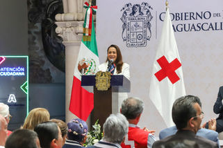 Durante el evento realizado en el segundo patio de Palacio de Gobierno, Tere Jiménez entregó una donación de 3 millones 500 mil pesos a la Cruz Roja Mexicana, que permitirán reforzar el equipamiento y la atención de emergencias en beneficio de las y los aguascalentenses.