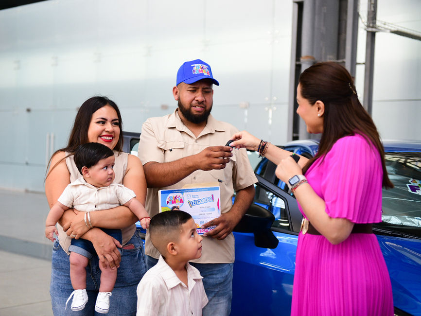 “Muchas felicidades. No cualquiera gana estos premios; entre más de 55 mil personas, ustedes lograron ser los ganadores y hoy se llevan su Nissan Versa a casa”, les dijo la gobernadora.