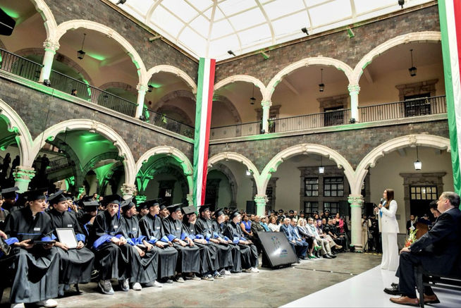 En un evento cargado de emoción y orgullo, Tere Jiménez les dio un mensaje de aliento y reconocimiento a las y los graduados del programa que impulsa la Secretaría de Seguridad Pública en conjunto con diversas áreas, como el Instituto para la Educación de Personas Jóvenes y Adultas (Inepja)