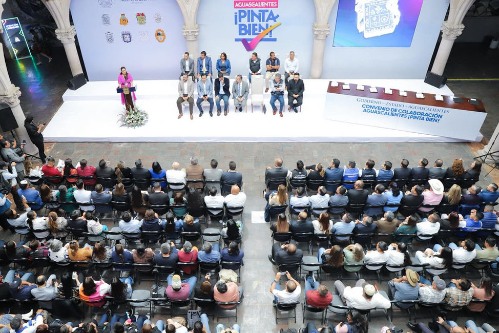 La gobernadora de Aguascalientes, Tere Jiménez, encabezó la presentación de “Aguascalientes ¡Pinta Bien!”, el programa de mejoramiento de imagen urbana más grande en la historia del estado, mediante el cual se pintarán 10 mil fachadas en distintos municipios, con el objetivo de embellecer las ciudades y dignificar el entorno de miles de familias.