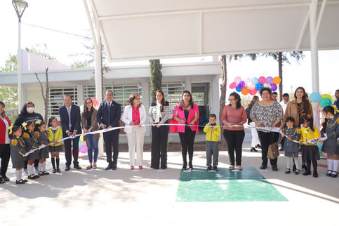 En su visita a este plantel se realizó la entrega de un aula y las oficinas de dirección del área de preescolar, infraestructura que beneficiará las actividades académicas y administrativas.